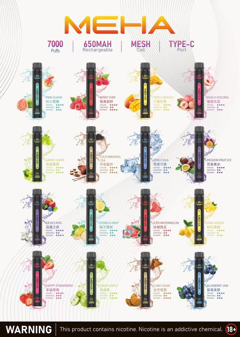 Meha Xbar 魅嗨小黑條 7000 Puffs 一次性電子煙,結合大容量、可充電、多口味與便捷操作,是你日常使用或外出旅行的理想選擇。立即選購,體驗順滑穩定的風味享受!